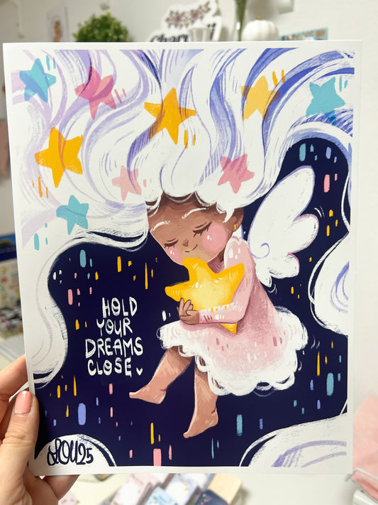 Angel with Star – Hold Your Dreams Close | Children’s Book Style Wall Art for Girls & Nurseries