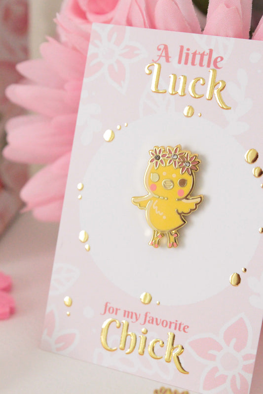 Adorable Chick Enamel Pin with Rhinestone - Good Luck Charm - Unique Gift Idea