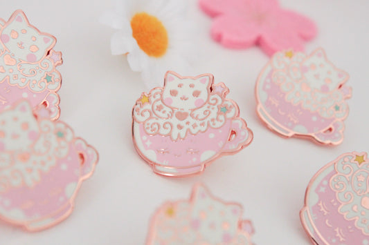 Catpuccino Enamel Pin - Start your day with catpuccino - Cute cat pin - rosé gold