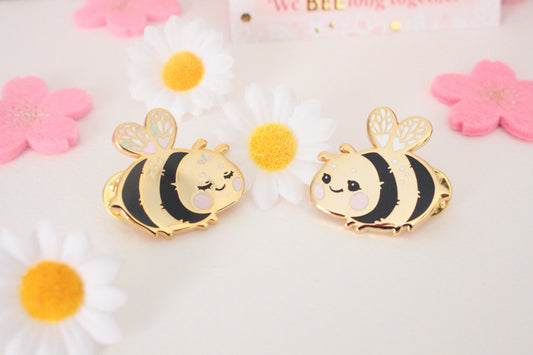SET Cute and shiny bumblebee enamel pins - best friends or couple pins - couple matching gift