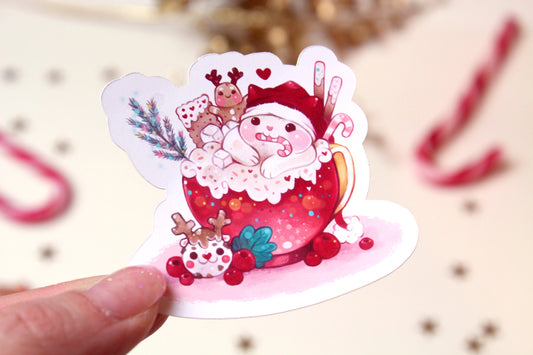 Cozy Christmas "CAFELINI" - Cute Milk Foam Cats - PAPER or VINYL Sticker