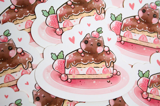 Cafelini Strawberry Chocolate Short Cake - PAPER or VINYL Sticker