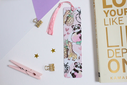 Cute Panda and Giraffe Metal Bookmark with Tassel - long-lasting Bookmark - hand-made