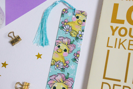 Cute Duck Metal Bookmark with Tassel - Floral Illustration - long-lasting Bookmark - hand-made