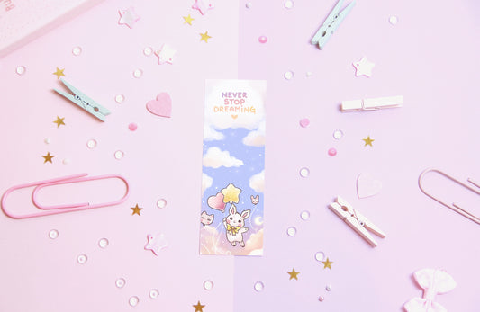 Paper Bookmark "Dare To Dream Big" - Cute Booklover Bunny Bookmark